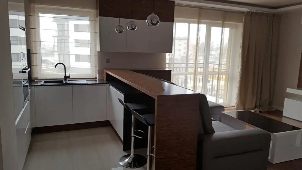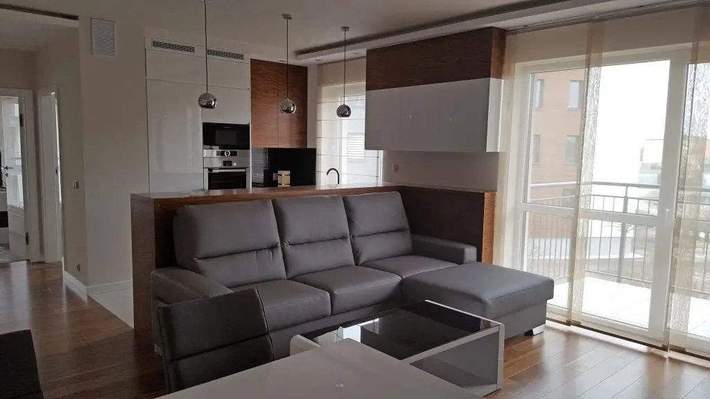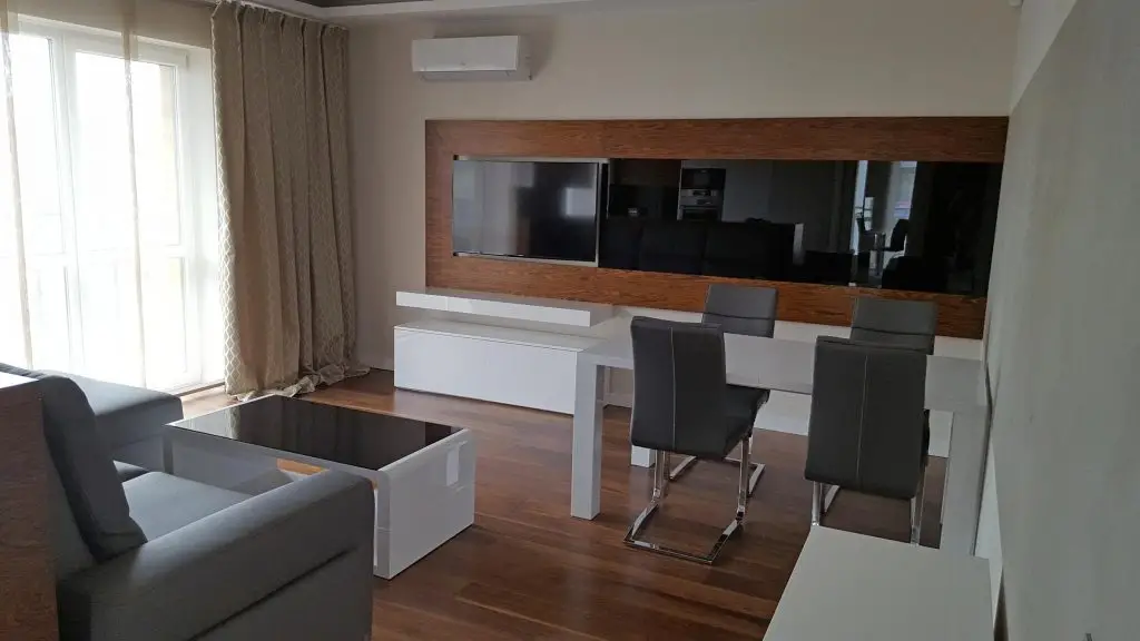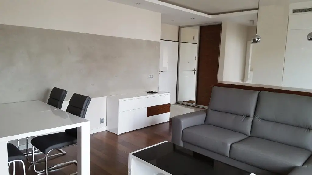 Założeniem w tym wnętrzu było wykonanie aranżacji luksusowego mieszkania w nowoczesnym ale ciepłym klimacie. Apartament składa się z dwóch niezależnych sypialni, łazienki oraz wspólnej części otwartej kuchni i salonu.