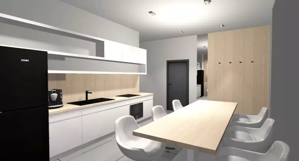 Całość została utrzymana w minimalistycznym stylu. Uwzględniliśmy bardzo praktyczne, łatwe do utrzymania w czystości powierzchnie podłóg oraz ścian. Wszystkie meble zostały wykonane z materiałów trudnopalnych o podwyższonej klasie ścieralności.